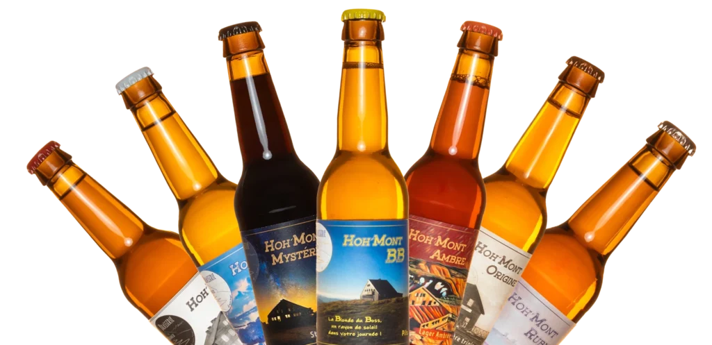 À quelques kilomètres en contrebas, à La Bresse, notre Brasserie du Hohneck donne vie à des bières artisanales brassées avec passion. Blondes, ambrées, IPA, triples ou blanches aux framboises… chaque bière raconte notre terroir et notre sommet.